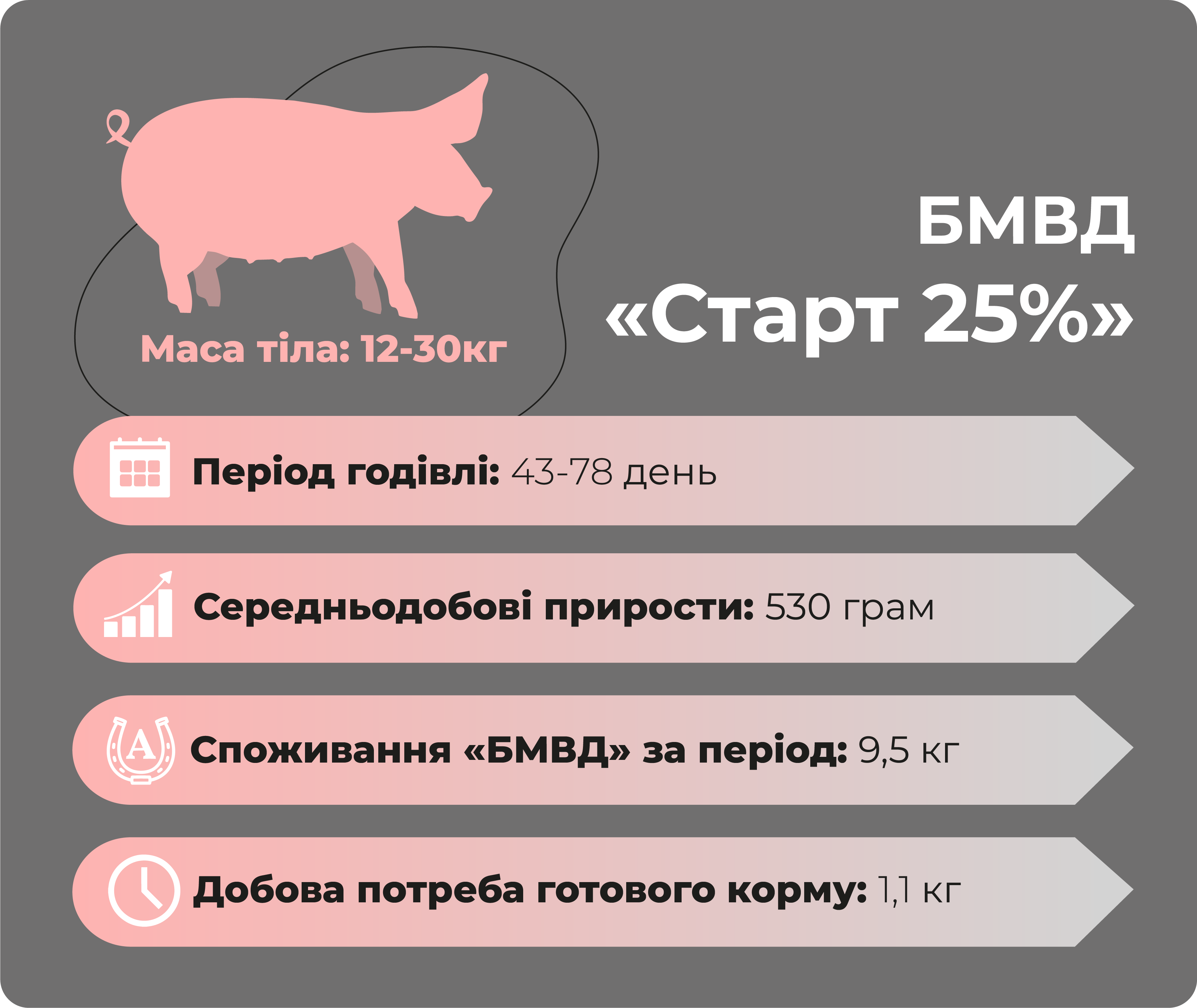 Шукаєте найкращий корм? БМВД для поросят “Старт 25%”  – це ідеальне рішення для забезпечення швидкого та здорового росту ваших поросят.