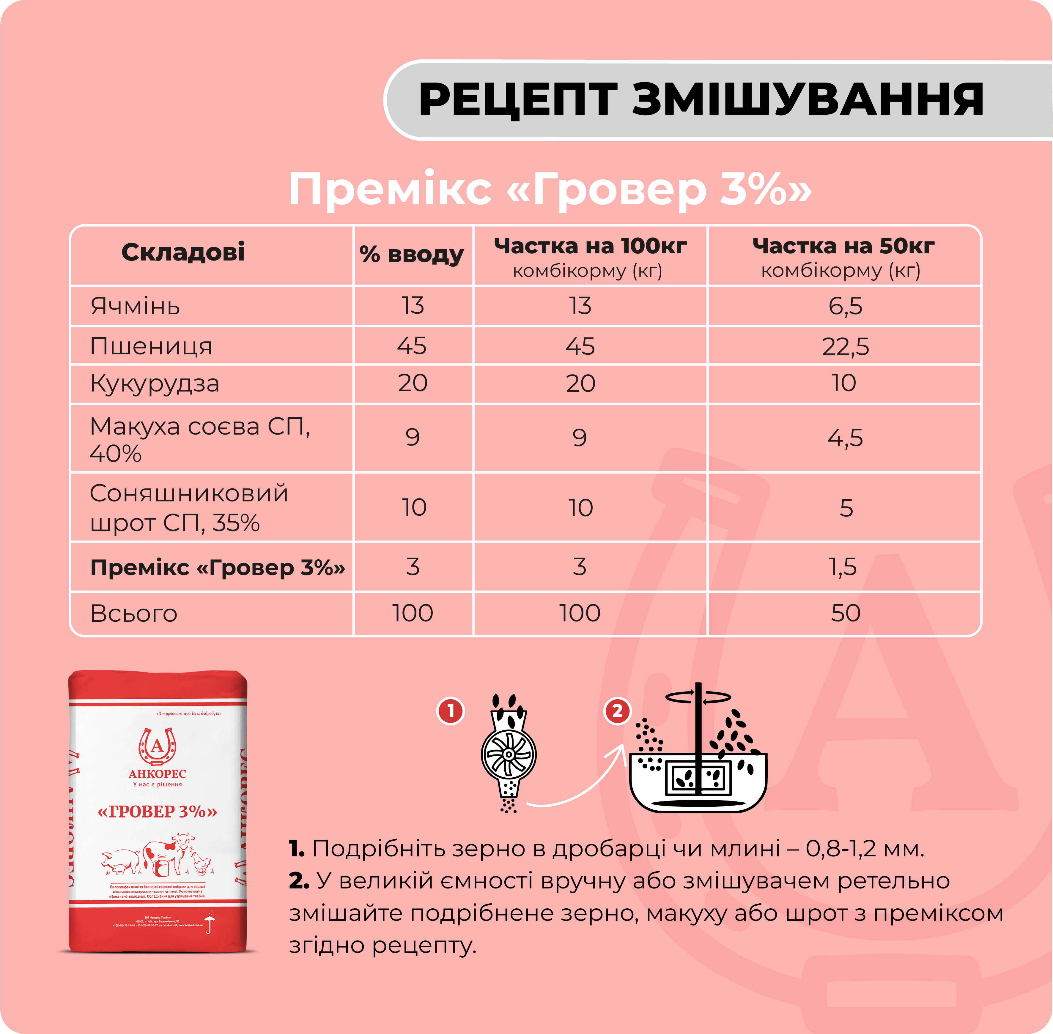 Купити премікс «Гровер 3%» від українського виробника «Анкорес» можна в нашому інтернет-магазині.