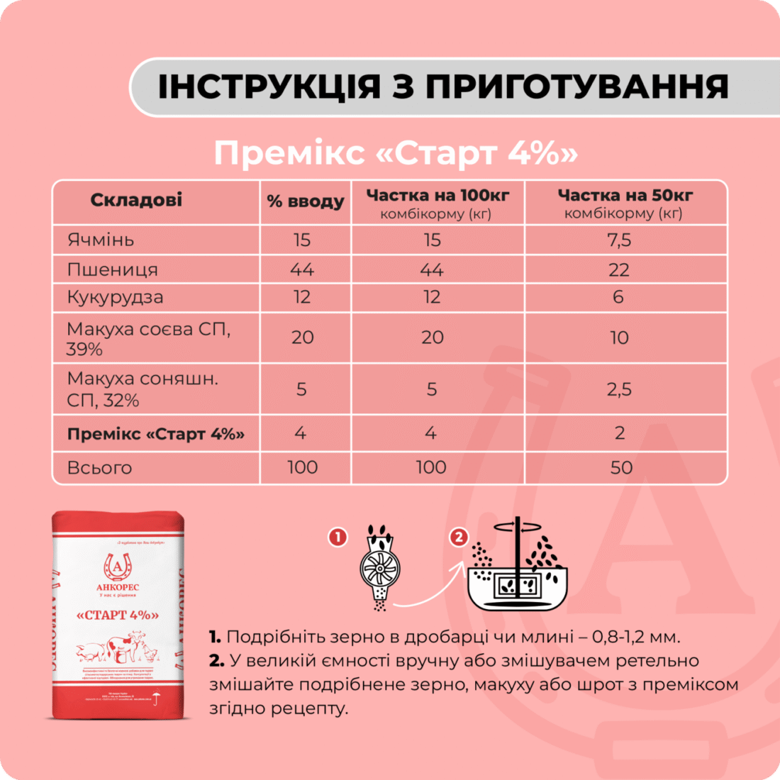 Купуючи Премікс «Старт 4%» від «Анкорес» ви отримаєте: